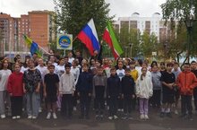 Почетным правом поднять государственный флаг удостоились активисты отряда Юнармии: Лебезин Егор и Карпов Марк.