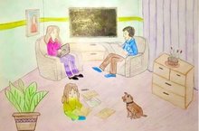 Гогина Софья, ученица 1б класса (кл.рук. Прописнова Л. И.), принимает участие в муниципальном конкурсе рисунков «Всей семьей дома» -