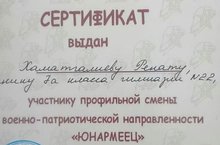 Сертификаты учасников профильной смены военно- патриотической направленности "ЮНАРМЕЕЦ" были вручены учащимся гимназии! 03.12.2019