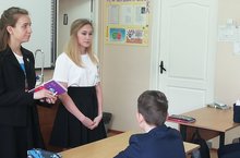 Сорокина Настя и Кучерявая Юля, члены совета РДШ НК, провели презентацию российского движения школьников для учащихся 7х классов 22 гимназии. Они агитировали школьников прийти в школьный актив РДШ, чтобы раскрыть свой талант и помочь другим проявить себя, в акциях, конкурсах, соревнованиях, презентациях и многом другом.