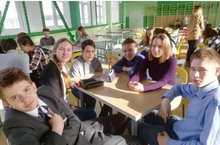 Поздравляем команду 8 а класса в составе Саперова Тимура, Конюхова Семена, Хабибуллиной Эллины, Шумиловой Веры, Шумилова Ивана, Опарина Романа - призеров (3 место) городского чемпионата интеллектуальной игры "Что? Где? Когда?"