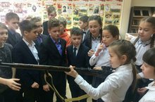 В рамках месячника гражданско-патриотического воспитания учащиеся 5а класса (кл. рук. Бакеева Г.Р.) ходили на экскурсию в "Музей боевой славы" школы №28, где представлены экспонаты,найденные поисковой группой "Нефтехим": личные вещи бойцов, павших на полях сражений, орудия времен ВОВ. Директор школы с энтуазизмом рассказал учащимся об экспонатах музея.