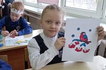 Учащиеся 1 В класса(кл.рук: Силина И. С.) выполнили коллективную творческую работу из ватных дисков и красок.