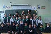 26 января к учащимся 4б класса пришли гости - представители городского казачьего общества. Детям рассказали об особенностях обмундирования казаков, о принципах жизни, чем занимаются дети в обществе, даже продемонстрировали свои шашки. Учащиеся засыпали их вопросами и долго не отпускали гостей.