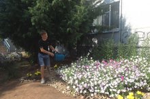 Сегодняшний день в пришкольном трудовом лагере был насыщен делами по уборке территории: поливка клумб и огорода, уборка яблок, прополка...