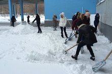 Погода ноября радовала нас своим разнообразием. На днях выпало столько снега, что ученикам приходится пробираться через высокие сугробы на пути к знаниям. 11А класс решил заменить свою утреннюю зарядку на полезное дело, взяв в руки лопаты. Теперь на территории школы на один сугроб меньше. Проводите свою зарядку с пользой!