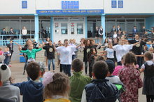 Каждый год 21 сентября международная общественность отмечает Международный день мира. Учредив этот День, Генеральная Ассамблея посвятила его ознаменованию и укреплению идеалов мира как внутри государств и народов, так и между ними. Тема Международного дня мира в этом году «Партнерство ради мира – достоинство для всех» призвана подчеркнуть важность совместной работы всех слоев общества на благо мира. Участниками проекта «SaMoSтоятельные дети» нашей гимназии «RESPECT» был организован танцевальный флешмоб, с раздачей информационных листовок «Мы вместе», который объединил всех учеников идеей «Сделай шаг на пути к миру»!