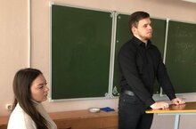 Патриотическое воспитание. На этой неделе в 10-х классах "Разговор о важном" состоялся дважды: в понедельник, как обычно, и сегодня, во вторник. Что значит быть патриотом? Все, конечно, знают: любить Родину. Но любить - это делать что-то конкретное для неё. Какой будет наша Россия, зависит от нас самих. Понять это старшеклассникам помогли наши замечательные выпускники: Камалов Булат, студент КФУ, и Ломова Яна, студентка МГИМО. На своём примере они показали, какие перспективы у современных молодых людей. Старшеклассники сейчас, определяя свою будущую профессию, делают и нравственный выбор. Эта встреча помогла кому-то в этом выборе. Яна и Булат, спасибо вам! А у ребят впереди не только разговоры, но и дела. -
