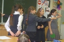 23 декабря учащиеся 5в класса (отряд ЮИД) провели в 1б классе классный час по безопасности дорожного движения, где показали малышам инсценировку, посвященную трехцветному другу ребят Светофору.