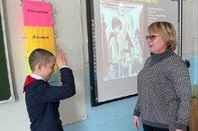 Классный руководитель Диденко Елена Алексеевна рассказала детям об истории пионерской организации, о её атрибутах: красном галстуке, пионерском знамени, горне и барабане.