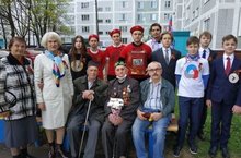 8 мая гимназисты (представители Юнармии, Российского движения школьников, совета старшеклассников "Содружество" гимназии 22) поздравили с 76-й годовщиной Великой Отечественной войны ветерана, участника ВОВ, проживающего в нашем микрорайоне - Мингазова Гаяза Мингазовича, 1924г.р.