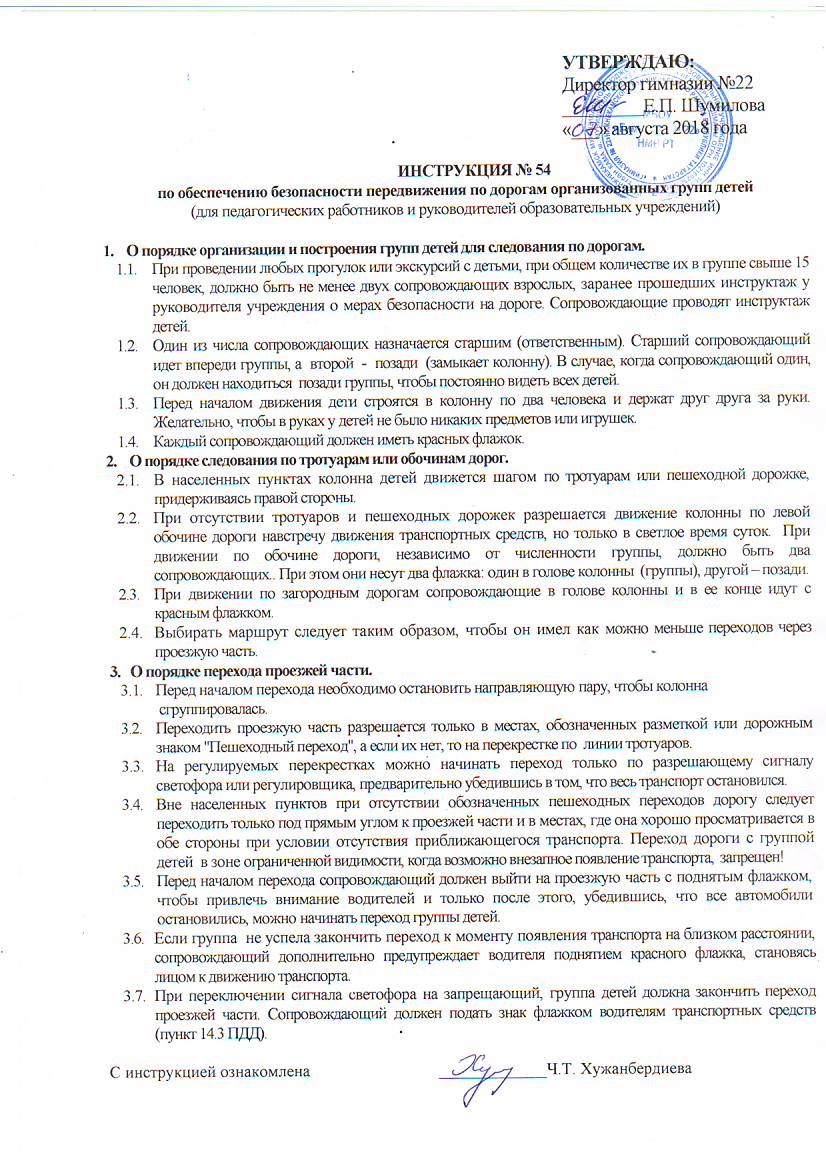 Инструкция № 54 по обеспечению безопасного передвижения по дорогам организованных групп детей