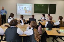 На занятии обучающимся рассказали о первом полете человека в космос и его значении. Также они узнали о других достижениях России в космической̆ отрасли.