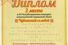 23-24 апреля 2016 года в р/п Аксубаево РТ состоялся XI Республиканский фестиваль исполнителей чувашских песен «Чувашский соловей». Коллектив гимназии-интернат «Çăлтăр» заняли 2 место. Поздравляем и желаем дальнейших успехов!