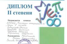 Савадерова Евгения, Захарова Кирилла, Исанина Николая, Аверкиной Людмилы приняли участие в игре "Математическое домино" и получили ДИПЛОМ II СТЕПЕНИ.