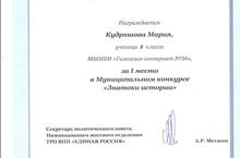 2011-2012 учебный году был проведён Муниципальный конкурс "Знатоки истории" для учащихся 2 по 11 классов.
