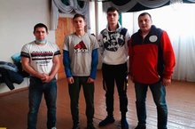 Было соревнование по армспорту среди школьных команд: 2 отца и 2 юноши. -