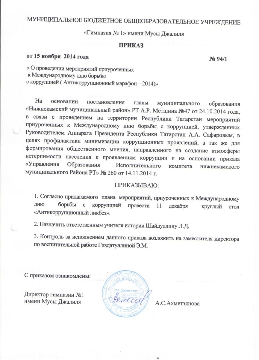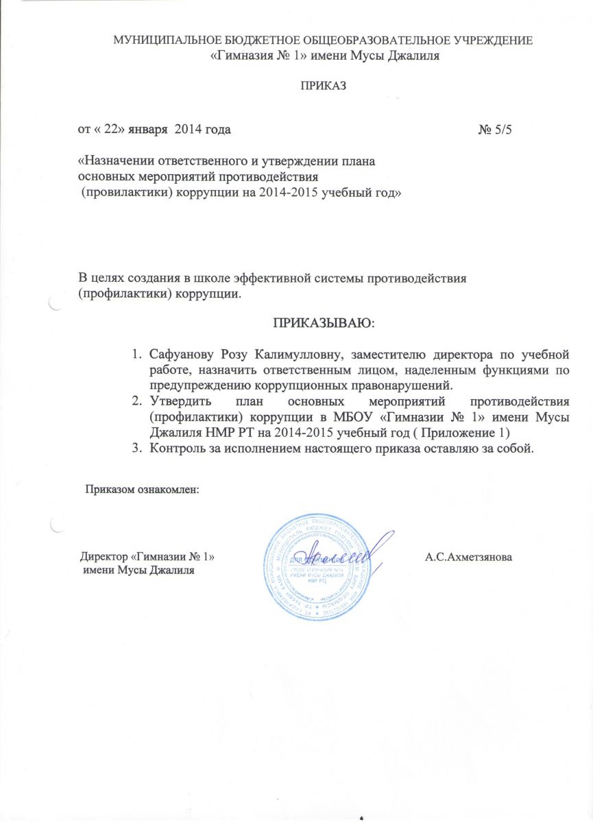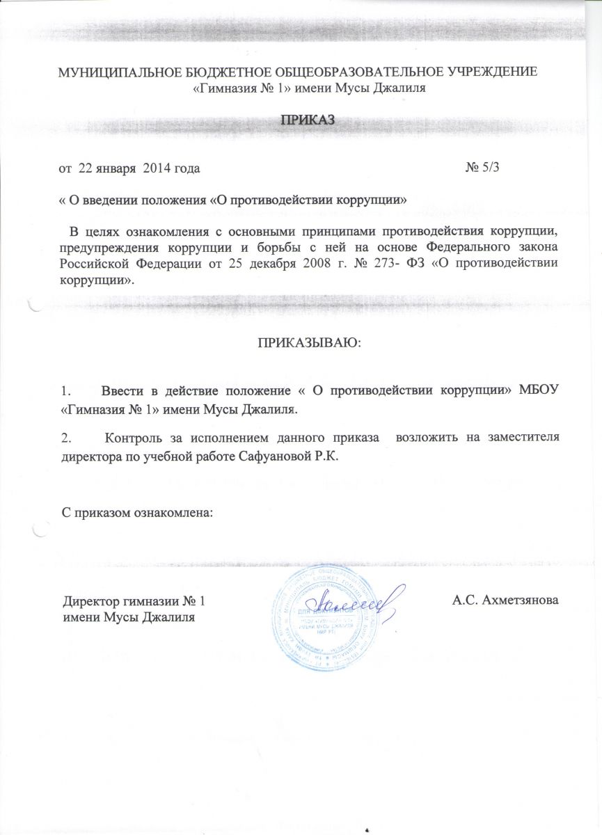 приказ О предотвращении коррупции в гимназии №1.docx