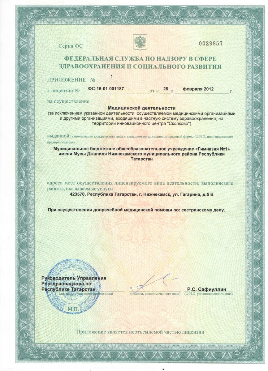 Муниципальное бюджетное общеобразовательное учреждение «Гимназия № 1» имени Мусы Джалиля Нижнекамского муниципального района Республики Татарстан\Татарстан Республикасы Түбән Кама муниципаль районының Муса Җәлил исемендәге “1 нче гимназия” муниципаль бюджет гомуми белем бирү учреждениесе