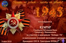 Команда по радиоспорту Гимназии №2 в составе Гирфанова Нияза, Галимовой Розалины и Зариповой Динары участвовали на Всероссийской дипломной программе "Мемориал Победы 74" и успешно выполнили условия диплома Мемориала. Тренер команды Ильяс Бикбаев.
