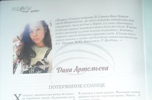 Какое волнение испытывает автор, когда держит в руках свое творение ,напечатанное на страницах солидного столичного журнала! Такие чувства испытала Дина Артемьева, ученица 8 Б, теперь уже 9 Б класса. Увидеть свое имя среди маститых писателей Татарстана, не это ли счастье! Поздравляем Дину Артемьеву и ее наставника Арсланову Р.С. с литературным дебютом .