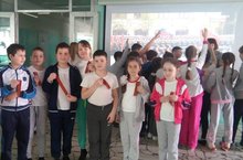 4 мая в гимназии стартовала Всероссийская акция «Георгиевская лента» для учащихся 2-5 классов в рамках Республиканского проекта "Шаги Победы". В гимназии на фоне видеороликов парада, кинофильмов военных действий 1941-1945 г.г. ребята рассказывали стихи о войне, а в подарок получали «Георгиевскую ленту».