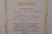 Безнең гимназиянең 8 нче а сыйныфы укучысы Хәмзин Камил (җитәкчесе Сабирова Л.А.)"Мәңгелек тел" республика лингвистика конкурсында "Эрудит" номинациясендә призер булды.Молодец Котлыйбыз.Яңадан-яңа уңышлар телибез