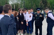 6 май көнне,безнең гимназиябезнең тарих укытучысы Шакирова Э.К.7 нче Б сыйныф укучылары белән бергә Хәтер дәресен Мәңгелек ут янында үткәрделәр.Укучылар якташ геройлар һәм Ватаныбызны яклаган бабалары ,туганнары турында сөйләделәр.