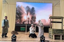 Театральләштерелгән тамашада рольләрне Татарстан Республикасының Атказанган мәдәният хезмәткәрләре Марат Баязитов белән Зөлфирә Баязитова, Фарил Дульмиев, күпсанлы Халыкара конкурслар лауреаты Ленар Хамматов һәм үзешчән артистлар - Айназ Газизов, Илназ Сибгатуллин, Нурия Халикова, Хәнифә Халикова башкарды. Артистларның чыгышы тамашачыларның дәвамлы алкышларына лаек булды.