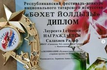 Гимназия укучылары "Бәхет йолдызы" республика милли татар сәнгате фестиваль-конкурсында катнаштылар. Салахиев Ралиф (җитәкче Зарипова А.Г.) I дәрәҗә лауреат исеменә лаек булды. Сафиуллин Булат, Гыйләҗева Айзилә (җитәкче Мөхәмәдшина Р.И.) III дәрәҗә лауреат исеменә лаек булдылар. Әмирханова Сөмбел (җитәкче Мөхәмәдшина Р.И.) I дәрәҗә дипломант. Тазеев Инсаф (Мөхәмәдшина Р.И.) II дәрәҗә дипломант. Молодцы балалар! Горурланабыз!