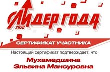 Эксперты Республиканского конкурса «Лидер года-2020» подвели итоги, в результате которых ученица 9г класса - Мухамедшина Эльвина получила сертификат участника.