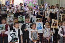 Сейчас уже сложно представить 9 Мая без «Бессмертного полка». Шествие с портретами фронтовиков - одна из самых зрелищных частей Парада Победы. Учителя гимназии и ученики с родителями приняли участие в праздничной акции. А у монумента Победы возложили цветы и в молчании каждый вспомнил своего «героя», беззаветно отдавшего свою жизнь за свободу и мирное небо сегодня для своих потомков.