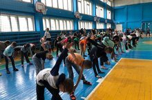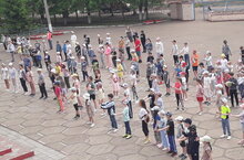 Каждое утро в пришкольном оздоровительном лагере "Солнышко" гимназии 32 начинается с весёлой зарядки.