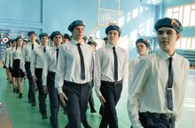 В завершении месячника гражданско - патриотического воспитания в гимназии прошел смотр - конкурс строя и песни среди 8-х классов.