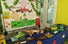 В рамках празднования Дня Победы в фойе 1 этажа организована выставка поделок "Оружие Победы". Учащихся 3-6 классов сделали своими руками военную технику, оружие, композиции на тему времен Великой Отечественной войны, а учащиеся 1-2 классов предоставили самодельные поздравительные открытки для ветеранов.
