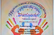 Диплом победителя в секции "Мой выбор здоровая жизнь!" - Комиссарова Ольга, ученица 7б класса;