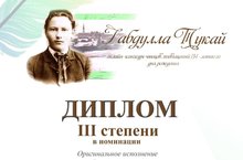Ученица 1 В класса Латыпова Адиля заняла 3 место вноминации "Оригинальное исполнение" в онлайн-конкурсе чтецов, посвященном 134-летию со дня рождения Габдуллы Тукая.