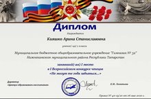 Поздравляем ученицу 2 Г класса Кияшко Арину с почетным 1 местом во Всероссийском конкурсе чтецов, посвященном 75-летию Победы "Не могут те года забыться..."