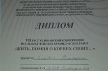 Сегодня в Нижнекамске состоялась Республиканская конференция исследовательских краеведческих работ «Жить, помня о корнях своих…». Нашу гимназию на конференции представила ученица 7 «В» класса» Елхова Виктория с исследовательской работой «Улицы родного города» в номинации «Литературное краеведение. Топонимика». Поздравляем Викторию и научного руководителя Клипову Наталью Александровну с победой!
