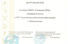 Поздравляем команду учителей гимназии №32, занявшую II место в XIV Спартакиаде работников образования г. Нижнекамска по итогам 2017-2018 учебного года. Наши педагоги соревновались с учителями других школ города в таких видах спорта, как настольный теннис, стрельба, шахматы, плавание и волейбол.