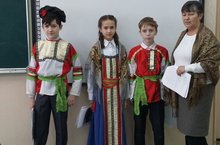 Юные экскурсоводы музея выступили на тему "В гостях у самовара" перед учащимися 5 - 7 классов. Ребята рассказали о старинных традициях чаепития, спели частушки и загадали загадки.