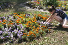 Учащиеся, посещающие ТОШ, ежедневно занимаются уходом за цветами в клумбах. Прежде всего, это прополка сорняков и полив цветов.