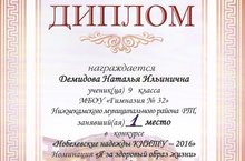 Победитель-Демидова Наталья, ученица 9 А класса (руководители:Давлетшина В.В., Валеева Е.Н.);