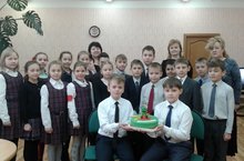 В рамках месячника гражданско – патриотического воспитания 12 февраля 2016г. в гимназии состоялось награждение победителей и призеров зонального этапа муниципального смотра – конкурса строя и песни. Якимова Л.А., директор гимназии вручила ребятам младшего и старшего взводов праздничные торты.