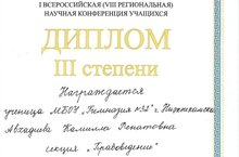 В г. Набережные Челны прошла I Всероссийская научная конференция учащихся. Нашу гимназию на конференции представила Авхадиева Камилла в секции "Правоведение". Поздравляем Камиллу с успешним выступлением - ДИПЛОМ 3 СТЕПЕНИ.