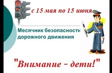С 15 мая по 15 июня объявлен Всероссийский профилактический месячник «Внимание – дети!», цель которого - привлечение внимания школьников, а также их родителей к проблеме детского дорожно-транспортного травматизма, к необходимости соблюдения Правил дорожного движения.