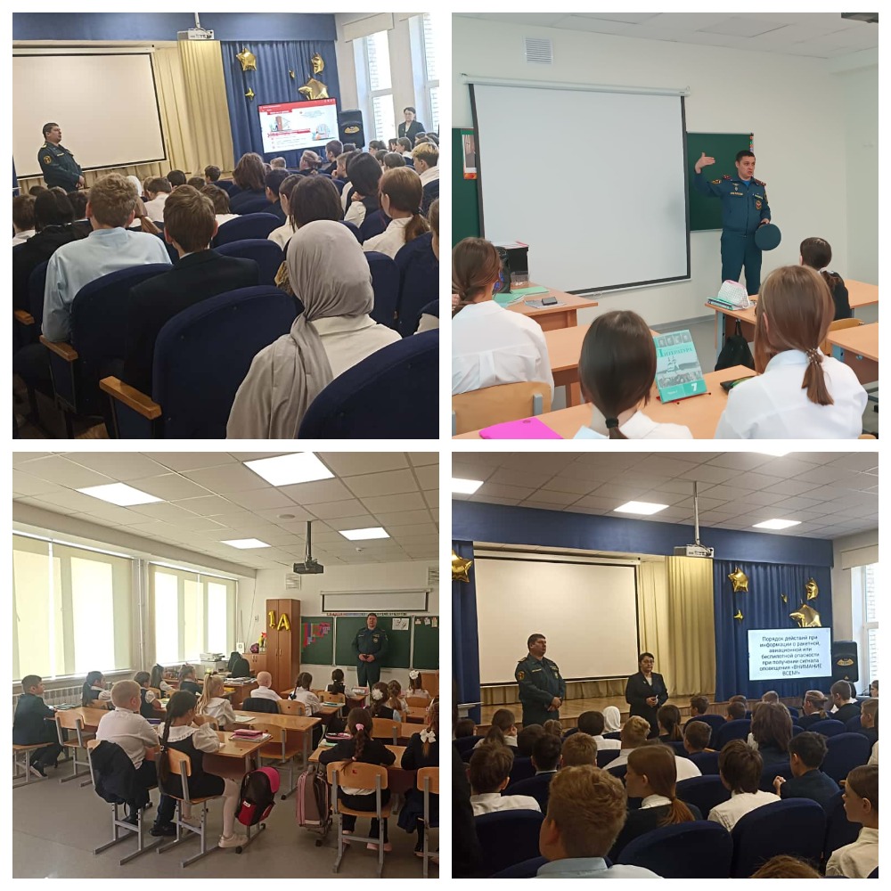 Сегодня 1октября 2025 года для учащихся 1-11 кл провели Всероссийский открытый урок культуры безопасности, приуроченный ко Дню гражданской обороны РФ. Руководитель отделения центра ГИМС МЧС России Трубин Дмитрий Владимирович и начальник пожарно- спасательного горнизона Муртазин Ильдар Минсалихович повторили порядок действий при получении сигнала оповещения о ракетной беспилотной опасности «ВНИМАНИЕ ВСЕМ»!Какие правила нужно запомнить каждому школьнику: