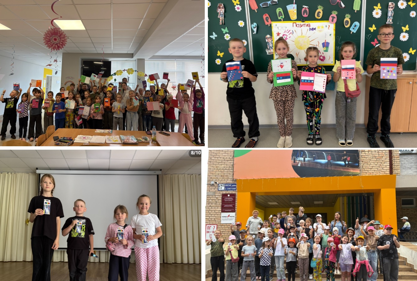 После познавательной беседы для ребят была организована квест-игра «Движение первых», где ребятам нужно было по станциям решать математические примеры, показывать и угадывать, как приветствуют друг друга в разных странах, отгадывать профессии, достопримечательности России и многое другое.