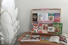 В школьной библиотеке организована выставка книг ко дню кошек. -
