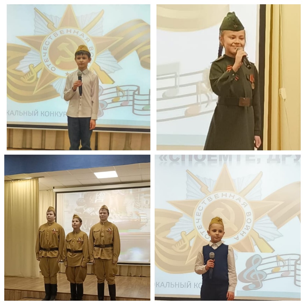 Сегодня в школе прошёл вокальный конкурс "Споемте, друзья! ", приуроченный году Защитника Отечества и 80-летию Победы советского народа в Великой Отечественной войне. В исполнении учащихся 1-5 классов прозвучали песни военных лет, песни о войне и мире.